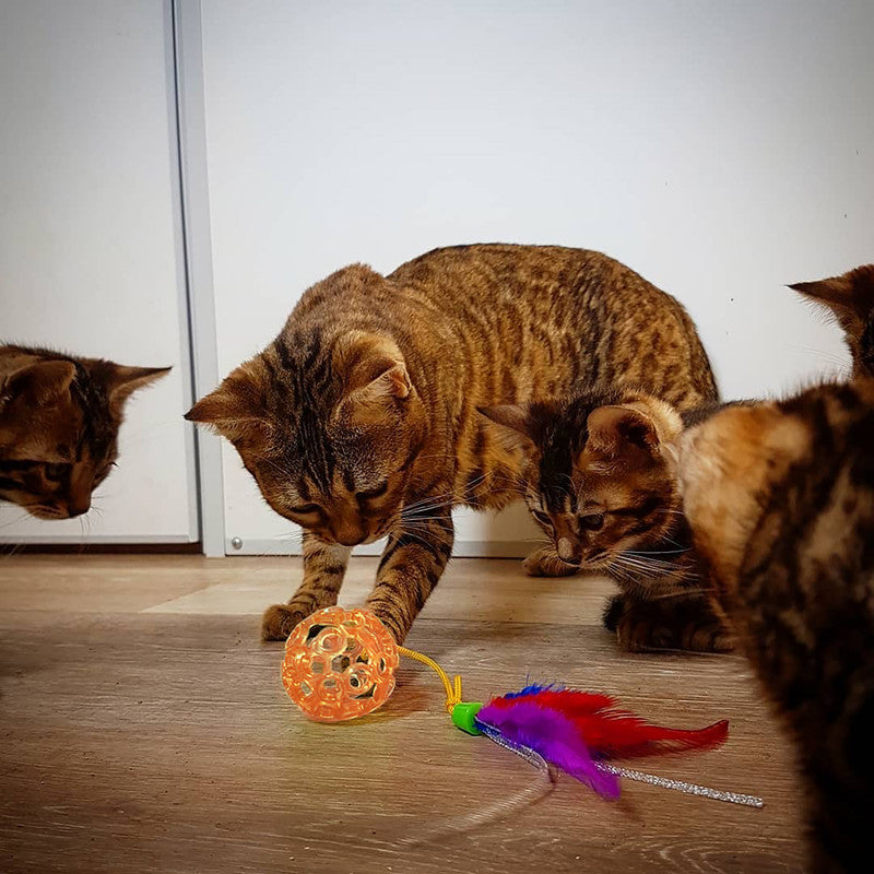 • Brinquedo para gatos em formato de bolinha com Catnip.