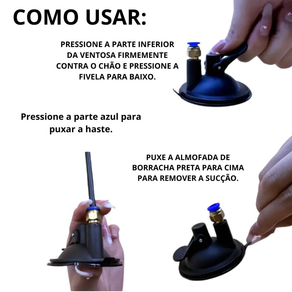 • Tamanho da Ventosa: 5 cm x 7 cm – fixação segura em pisos, azulejos e outras superfícies lisas.