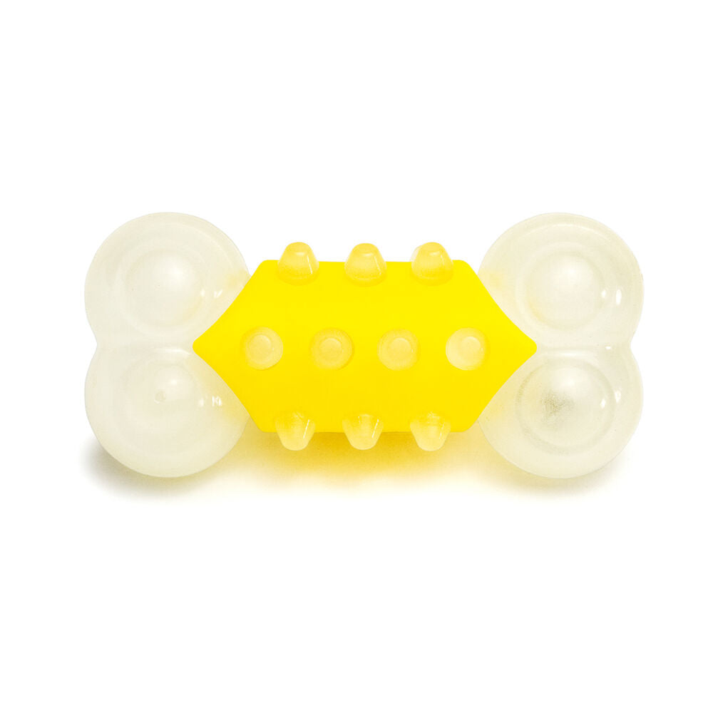 Além disso, este brinquedo oferece um elemento sonoro com um apito acionado por pressão. A adição desse estímulo auditivo agrega uma camada de diversidade às brincadeiras, mantendo o interesse do cão e incentivando um envolvimento mais ativo.