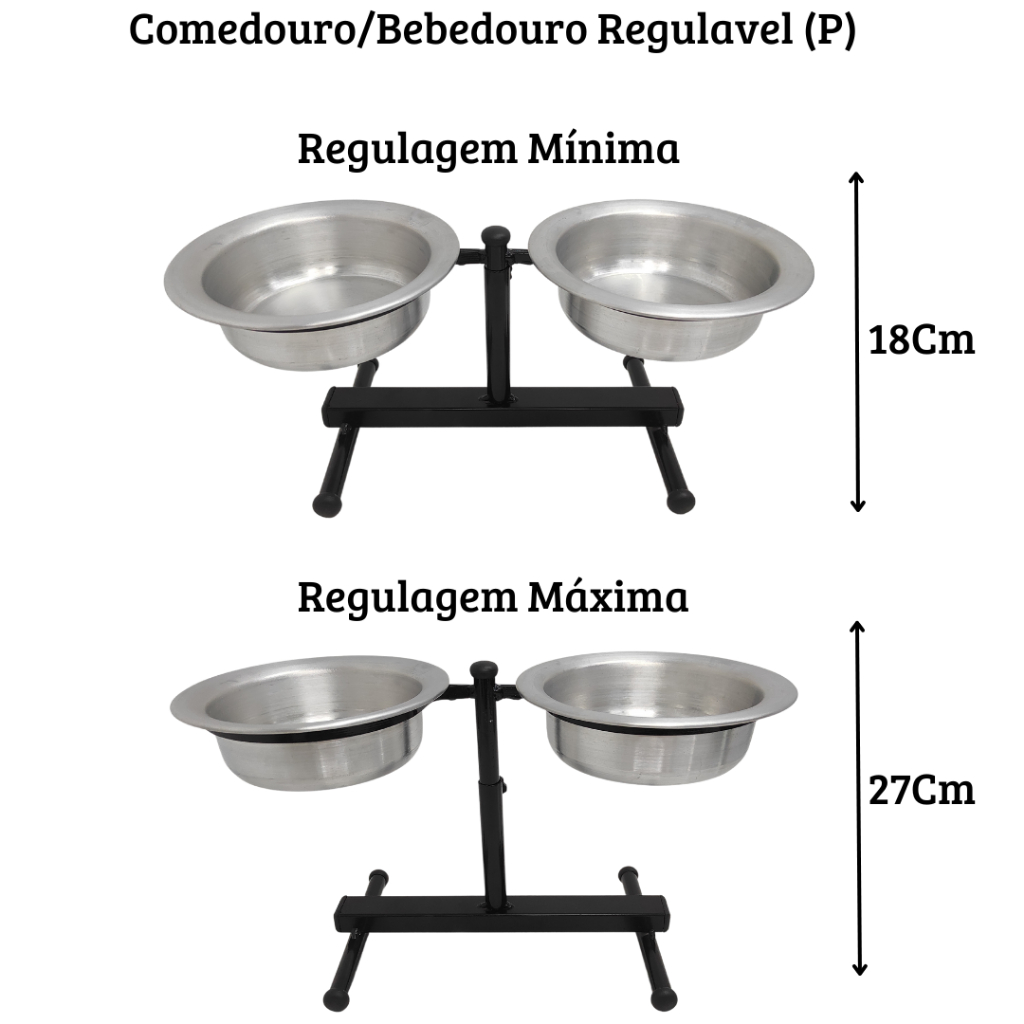 🔹 P (1L): Para cães de pequeno porte – Altura regulável de 18 cm a 27 cm.