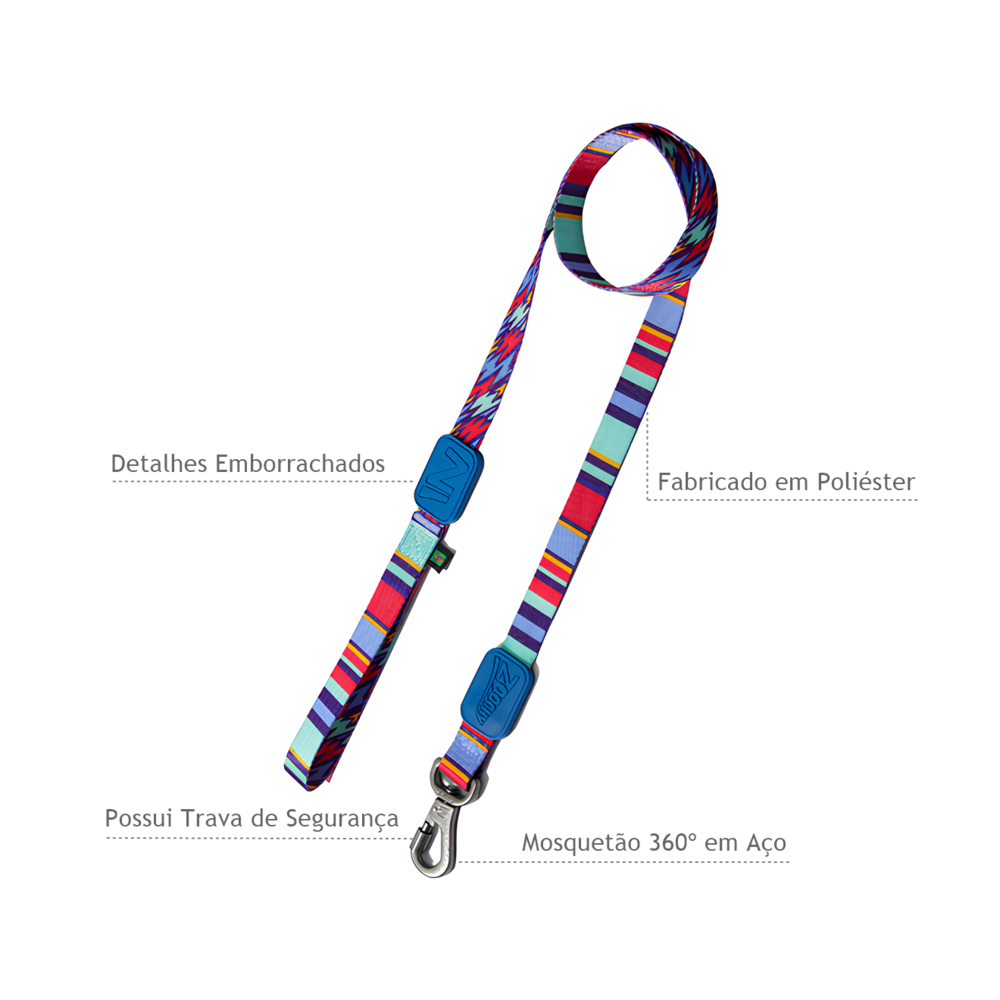 A guia é o complemento ideal para o conjunto. Com uma comprimento adequado para proporcionar liberdade de movimento, mas mantendo o controle, ela é prática e funcional. O mosquetão de metal é resistente e confiável, assegurando que você possa caminhar com seu cão com tranquilidade.